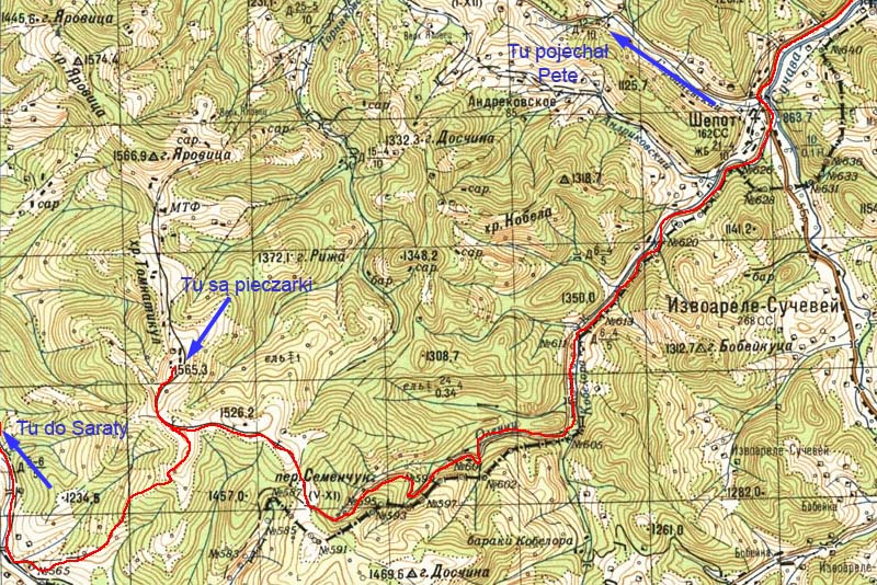 Trasa: Delatyn, Słoboda Rungurska, Jabłonów, Pistyń, Kosów, Wyżnica, Berehomet, przełęcz Szurdyn, Ruska, Selatyn, Szepit, g. Tomnatyk, Sarata, Hryniawa, poł. Watonarka, Szybene, Burkut, Stoh, Bogdan, Rachów, Kwasy, Jasinia, Tatarów, Mikulczyn, Jaremcze, Delatyn. Z Szybenego dodatkowo wycieczka rowerem do Burkutu i pieszo na Pop Iwana.